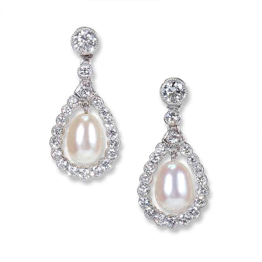 Bentley top pearl and diamond drop earrings